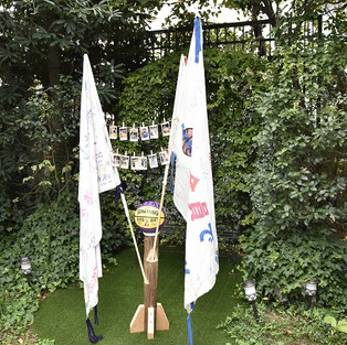 大学生の時、地元のミニバスケットチームのコーチとして子供たちと一緒に青春を走り抜けたという新郎様。そんな新郎様が大好きなバスケグッズや、チームの応援旗、教え子一人ひとりの写真などが会場に飾られました。